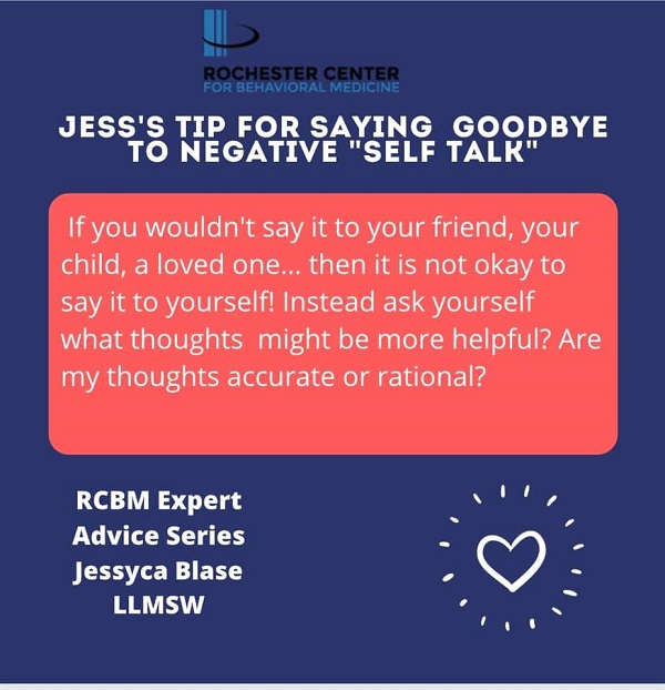 Have you ever missed an appointment and then internally beat yourself up? Maybe you’ve said to yourself- “this always happens to me, I am such a horrible mom, I am such an idiot…” the list of judgmental and critical thoughts goes on and on. RCBM's Jessyca Blase, LLMSW provides the following helpful tips to conquer negative self talk.